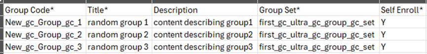 - Self Enroll (Mandatory field): Enter Y if you want students to be able to self enroll into groups; enter N if you want to assign students to groups yourself.