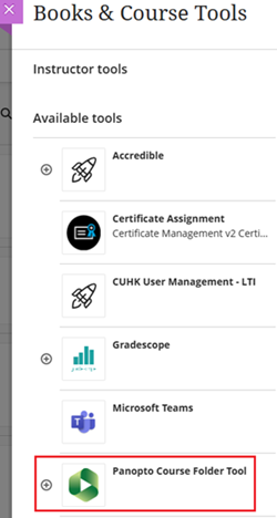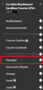 - Ultra Course View (Ultra): Please refer to Panopto Support: How to Add Panopto to Your Blackboard Ultra Course